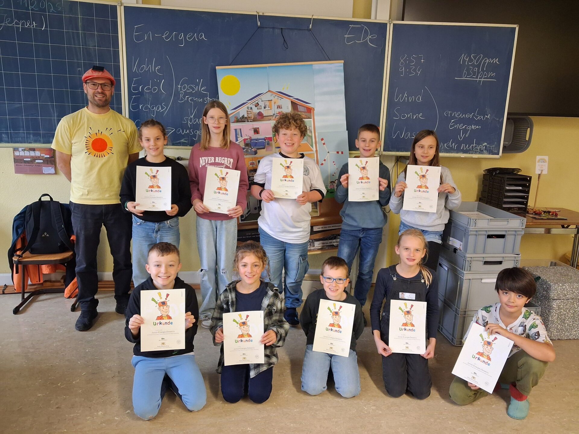 Der Vormittag der vierten Klassen stand unter dem Motto „Energiedetektive“. In spannenden Experimenten untersuchten die Schüler*innen den Stromverbrauch verschiedener Geräte und entwickelten Ideen zur Energieeinsparung. Besonders interessant war die Messung des Verbrauchs, bei der die Kinder herausfanden, welche Geräte viel Energie brauchen und wo Einsparpotenziale liegen. Kleine Änderungen wie richtiges Lüften oder das Ausschalten von Stand-by-Geräten können dabei viel bewirken.